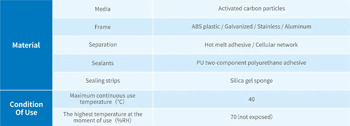 • Efficienza: Rimozione efficace di odori, gas e VOC mantenendo una bassa perdita di carico